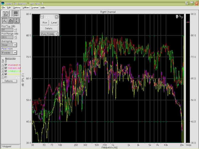 Above: Looking at the green/red (resolutiion) vs purple/yellow(celestion SL^) curces, you can see there are huge differences due to the loudspeakers chosen, so no wonder people say that loudspeakers are the weakest
